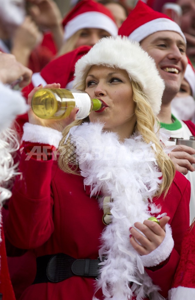【12月16日 AFP】大勢の人がサンタクロースの仮装で街に繰り出すクリスマスシーズン恒例のイベント「サンタコン(SantaCon)」が週末、英ロンドン(London)や米ニューヨーク(New York)などで開催された。