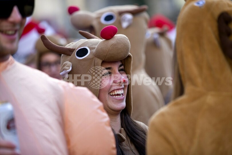 【12月16日 AFP】大勢の人がサンタクロースの仮装で街に繰り出すクリスマスシーズン恒例のイベント「サンタコン(SantaCon)」が週末、英ロンドン(London)や米ニューヨーク(New York)などで開催された。