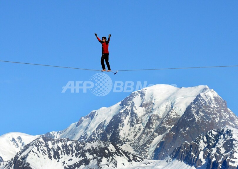 【12月17日 AFP】アルプス山脈の西欧最高峰モンブラン(Mont Blanc)に近い仏ラプラーニュ(La Plagne)、パラディスキー(Paradiski)のロープウエーで16日、フランスのジュリアン・ミロ(Julien Millot)さんとタンクレード・ムレー(Tancrede Melet)さんが綱渡りのパフォーマンスを披露した。