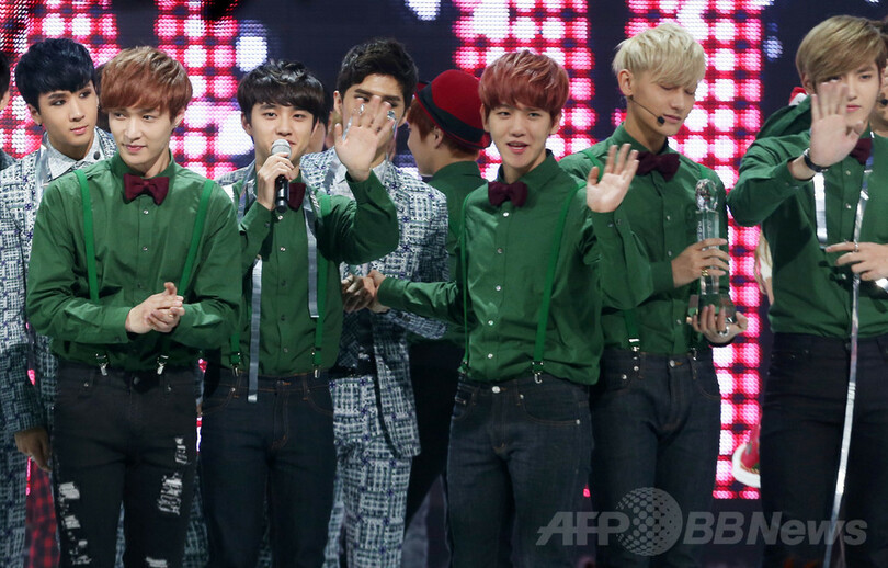 【12月23日 STARNEWS】韓国・ソウル(Seoul)のCJ E&Mセンターで19日、韓国のケーブルテレビ・エムネット(Mnet)の音楽番組「エム・カウントダウン(M countdown)」で、アイドルグループ「EXO(エクソ)」が1位を獲得した。(c)STARNEWS