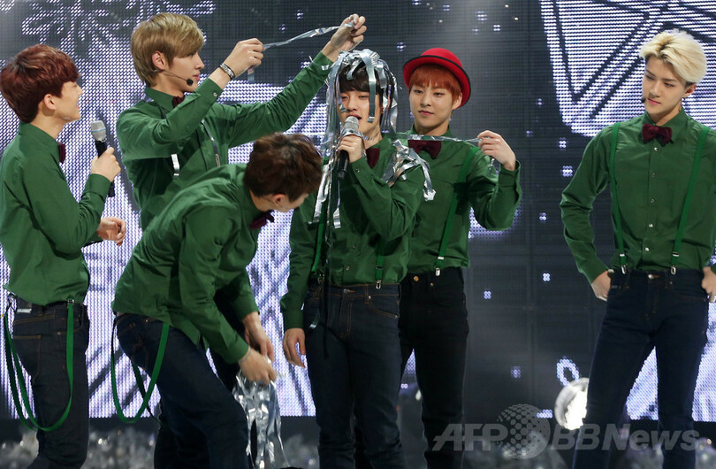 【12月23日 STARNEWS】韓国・ソウル(Seoul)のCJ E&Mセンターで19日、韓国のケーブルテレビ・エムネット(Mnet)の音楽番組「エム・カウントダウン(M countdown)」で、アイドルグループ「EXO(エクソ)」が1位を獲得した。(c)STARNEWS