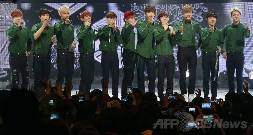 【12月23日 STARNEWS】韓国・ソウル(Seoul)のCJ E&Mセンターで19日、韓国のケーブルテレビ・エムネット(Mnet)の音楽番組「エム・カウントダウン(M countdown)」で、アイドルグループ「EXO(エクソ)」が1位を獲得した。(c)STARNEWS