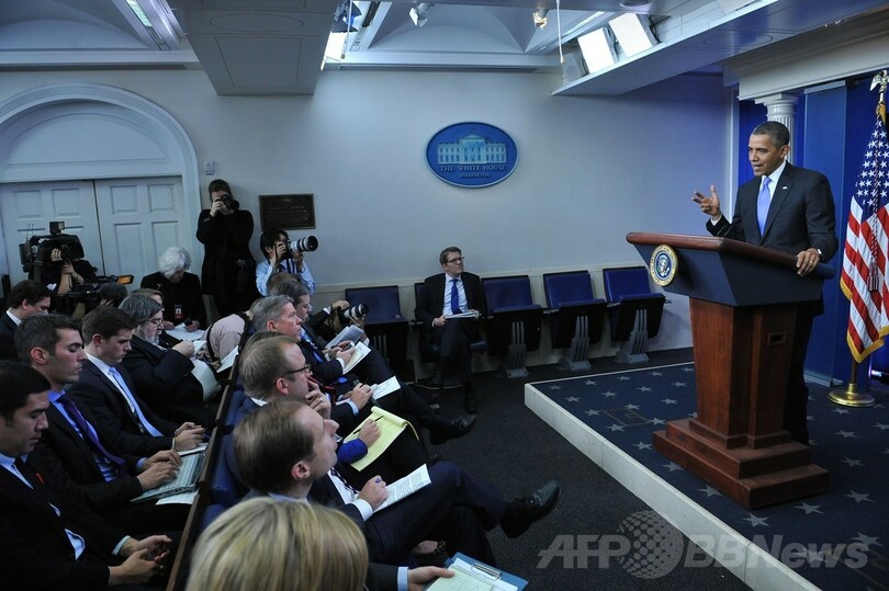 記者会見が始まる1時間前に発表された米CNNテレビと調査会社ORCインターナショナル(ORC International)の世論調査の結果によると、オバマ大統領の直近の支持率は41%となっている。