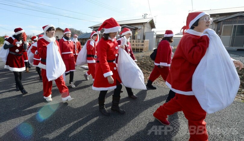 【12月22日 AFP】福島県いわき市で21日、サンタクロースの衣装を着た約100人のボランティアが、2011年3月11日に起きた東日本大震災で被災した人たちや、東京電力(TEPCO)福島第1原発事故で避難してきた人たちにクリスマスプレゼントを届けた。(c)AFP