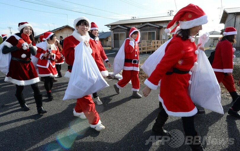 【12月22日 AFP】福島県いわき市で21日、サンタクロースの衣装を着た約100人のボランティアが、2011年3月11日に起きた東日本大震災で被災した人たちや、東京電力(TEPCO)福島第1原発事故で避難してきた人たちにクリスマスプレゼントを届けた。(c)AFP