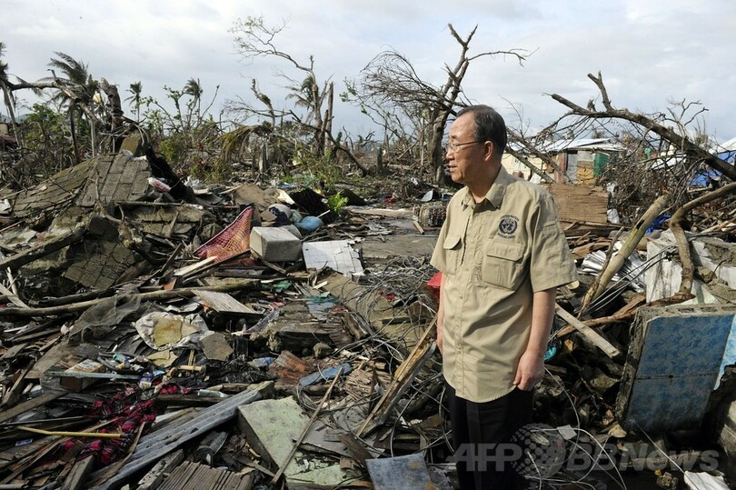 【12月22日 AFP】国連(UN)の潘基文(バン・キムン、Ban Ki-moon)事務総長は22日、超大型の台風30号(アジア名:ハイエン、Haiyan)で壊滅的な被害を受けたフィリピンが復興資金の不足に悩まされているとして、各国に支援の強化を呼び掛けた。