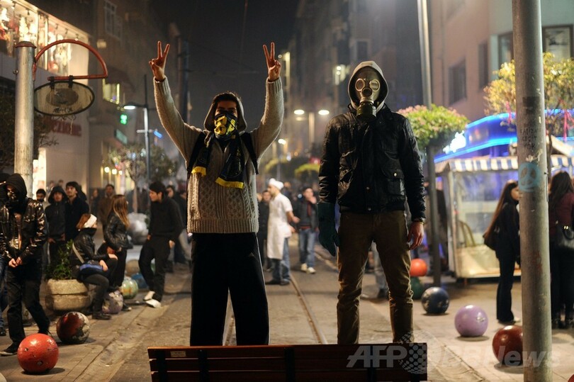 一方、イスタンブール(Istanbul)では同日、内閣総辞職を求める数千人規模の反政府デモ隊が機動隊と衝突した。デモの主な目的は巨大都市開発プロジェクトへの反対だが、靴箱を掲げて閣僚の汚職に怒りを表す参加者もいた。