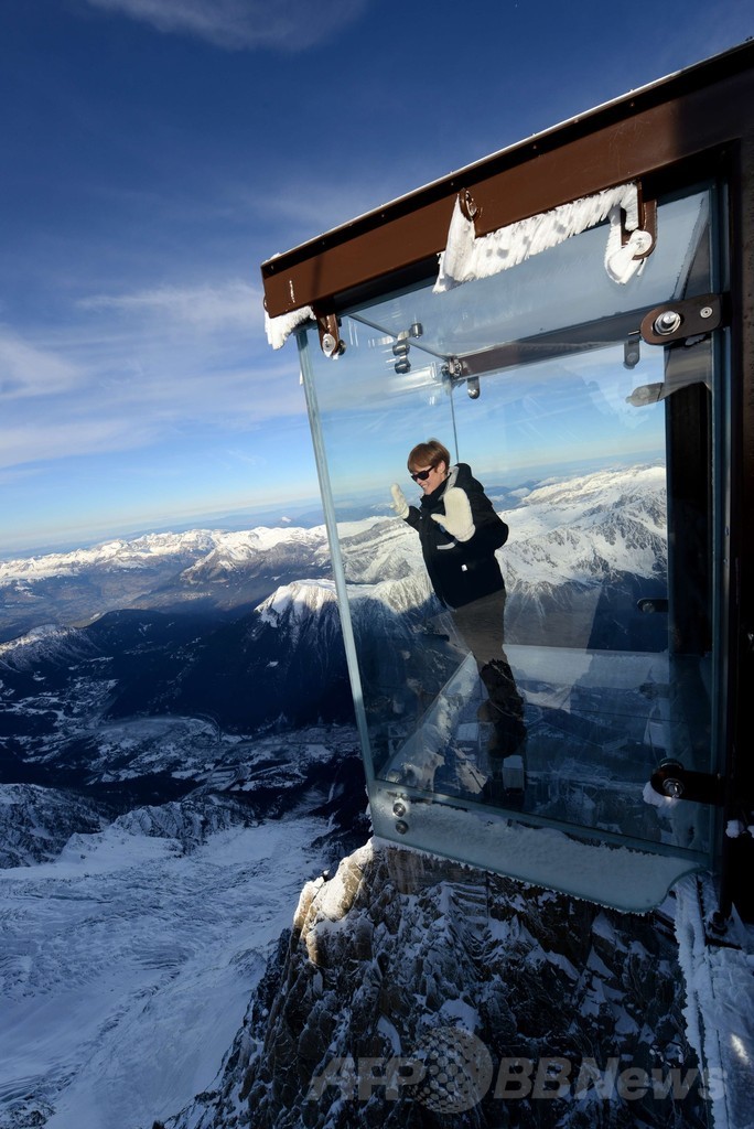 【12月24日 AFP】仏アルプス(Alps)山麓のシャモニー(Chamonix)で、3年をかけて建設されたガラス製の展望台、「Step into the Void(空間に入る、の意味)」の利用が開始された。高さ3842メートルの位置に設けられたこの展望台は3層ガラスでできており、時速200キロの風に耐えられる。(c)AFP