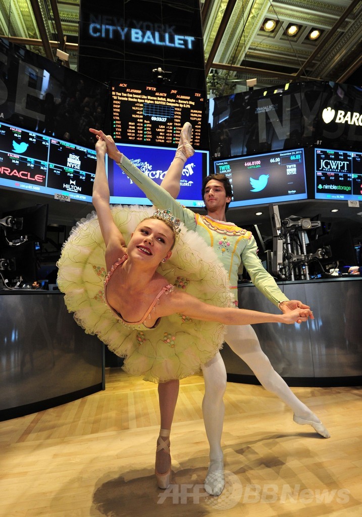 XマスイブのNY証券取引所、バレリーナたちが取引開始のベル
