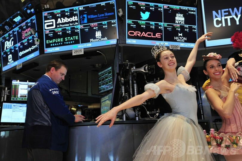 XマスイブのNY証券取引所、バレリーナたちが取引開始のベル
