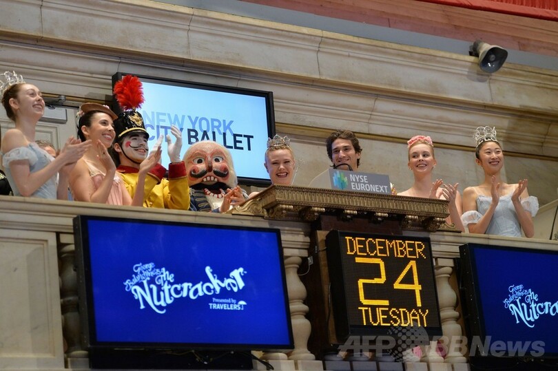 XマスイブのNY証券取引所、バレリーナたちが取引開始のベル