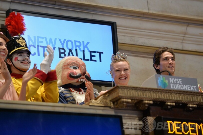 XマスイブのNY証券取引所、バレリーナたちが取引開始のベル