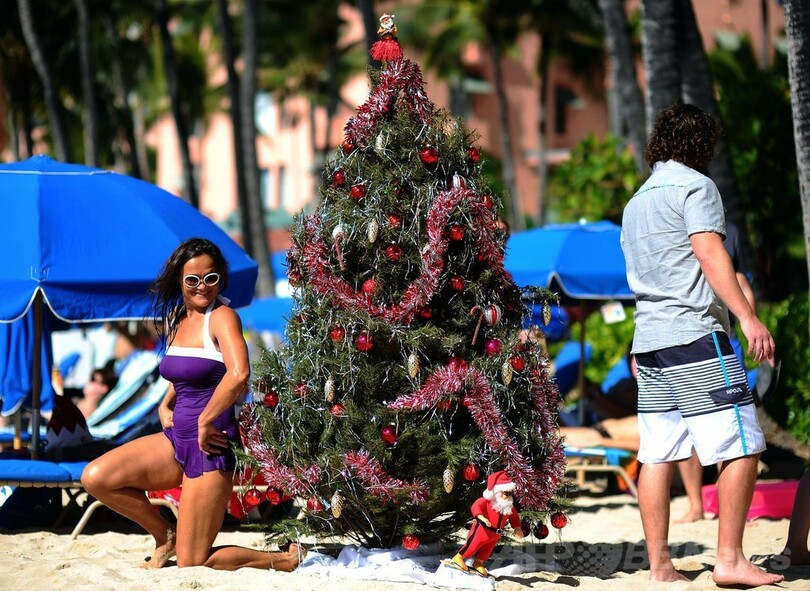【12月26日 AFP】米ハワイ(Hawaii)州ホノルル(Honolulu)のワイキキビーチ(Waikiki Beach)では25日、明るい日差しの下で南国のクリスマスを楽しむ人たちの姿が見られた。(c)AFP