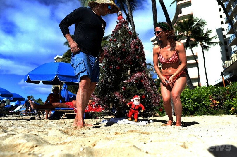 【12月26日 AFP】米ハワイ(Hawaii)州ホノルル(Honolulu)のワイキキビーチ(Waikiki Beach)では25日、明るい日差しの下で南国のクリスマスを楽しむ人たちの姿が見られた。(c)AFP