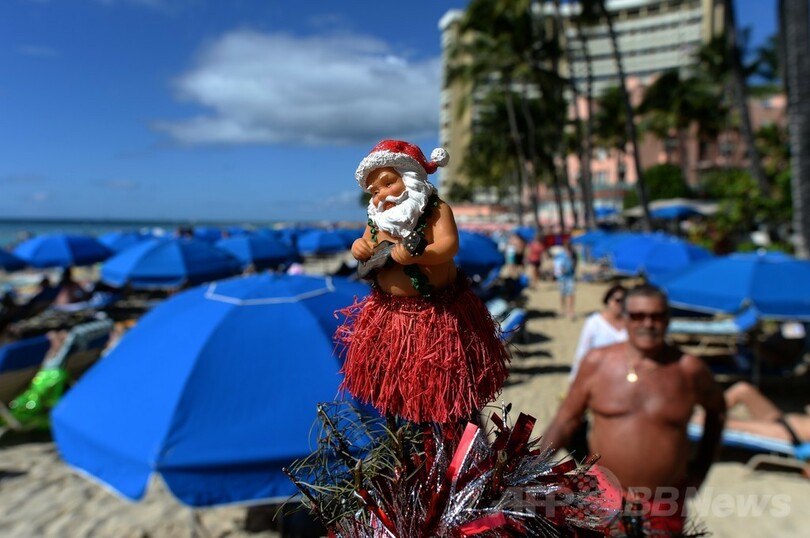 【12月26日 AFP】米ハワイ(Hawaii)州ホノルル(Honolulu)のワイキキビーチ(Waikiki Beach)では25日、明るい日差しの下で南国のクリスマスを楽しむ人たちの姿が見られた。(c)AFP