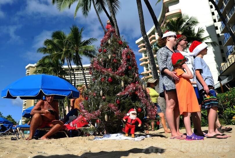 【12月26日 AFP】米ハワイ(Hawaii)州ホノルル(Honolulu)のワイキキビーチ(Waikiki Beach)では25日、明るい日差しの下で南国のクリスマスを楽しむ人たちの姿が見られた。(c)AFP