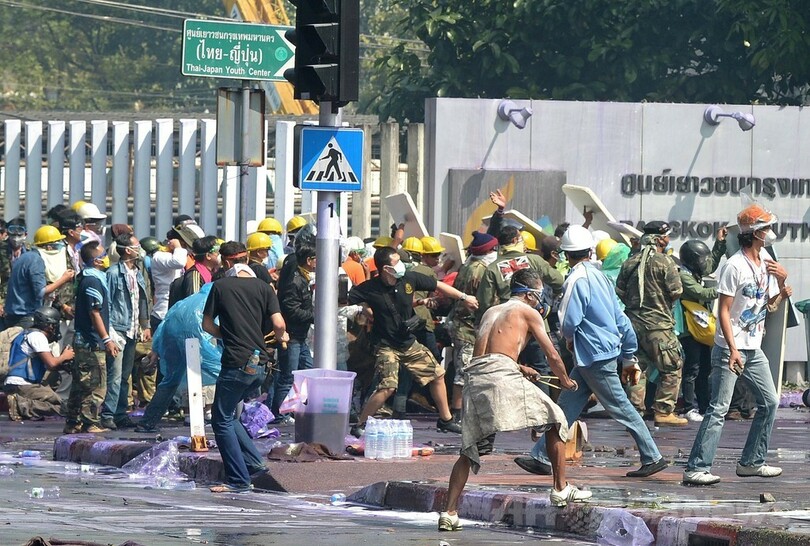 来年の総選挙に向けた立候補者の登録受け付けが行われているバンコク市内の競技場に向かっていたデモ隊を、治安部隊が催涙弾やゴム弾を用いて阻止した。