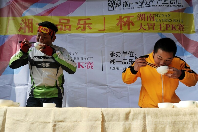 【12月31日 AFP】中国湖南(Hunan)省瀏陽(Liuyang)で27日、大食いコンテストが開かれ、中国で最も有名なフードファイターである潘一中(Pan Yizhong)さんが、虫の大食いに挑戦した。餃子147個を一気に平らげ、15分で麺40杯を完食した潘さんは、次なる挑戦を模索しているが、この趣味のせいで結婚生活は破局してしまったという。(c)AFP