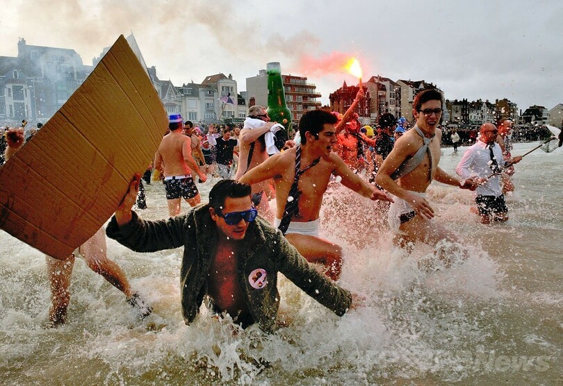 新年祝い極寒の海にダイブ!世界各地で寒中水泳大会