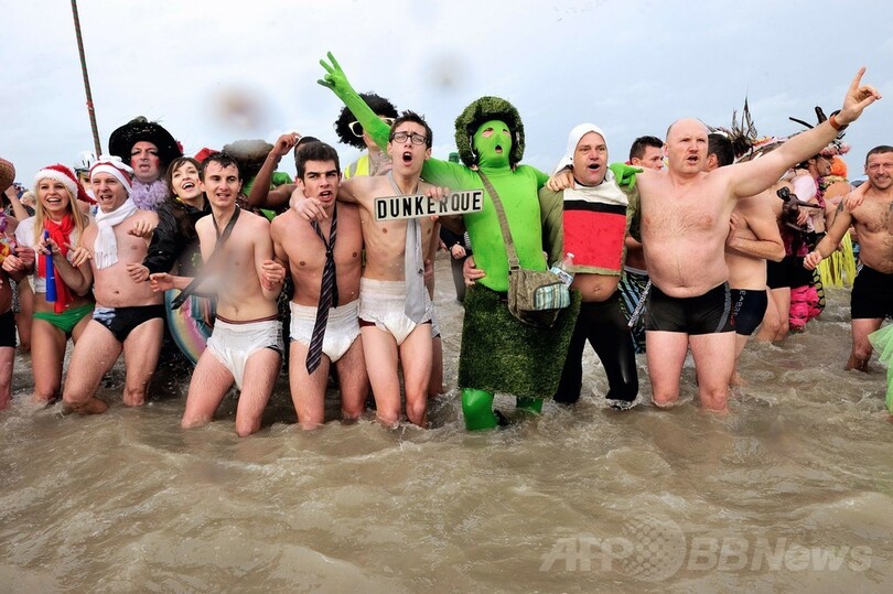 オランダでの元旦寒中水泳は1960年、新年を祝おうと数人が海に飛び込んだのがきっかけで始まったという。(c)AFP
