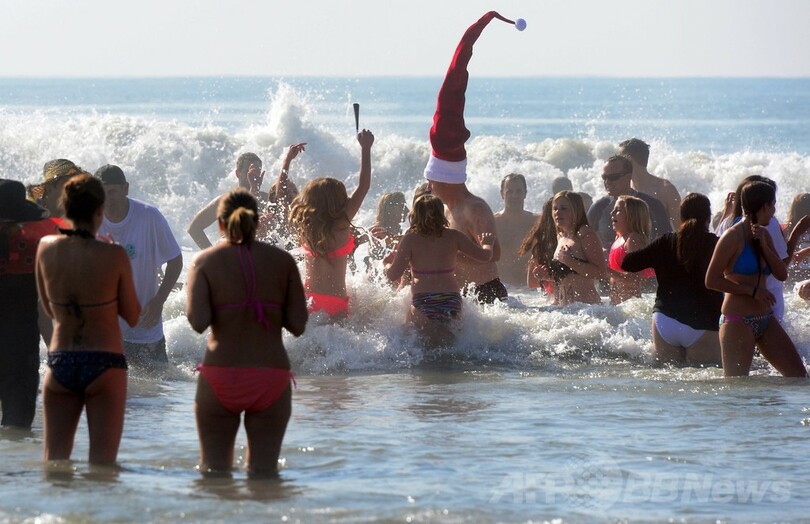 【1月2日 AFP】世界各地のビーチで1日、人々が冷たい海に飛び込んで新年を祝った。