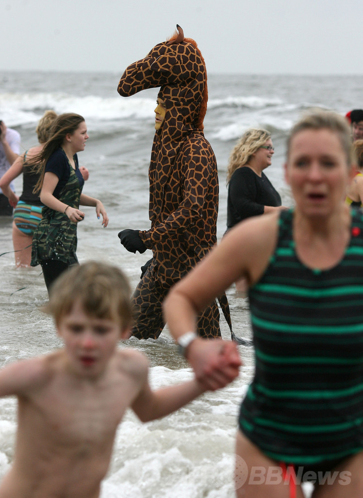 【1月2日 AFP】世界各地のビーチで1日、人々が冷たい海に飛び込んで新年を祝った。