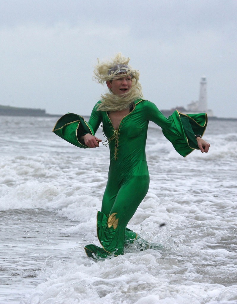 元旦の寒中水泳が50年以上続く伝統行事となっているオランダでは、北海(North Sea)沿岸で多くの大会が開催された。大会主催者によると、ハーグ(Hague)のスヘベニンゲン(Scheveningen)地区のビーチには水着姿の約1万人が集まった。
