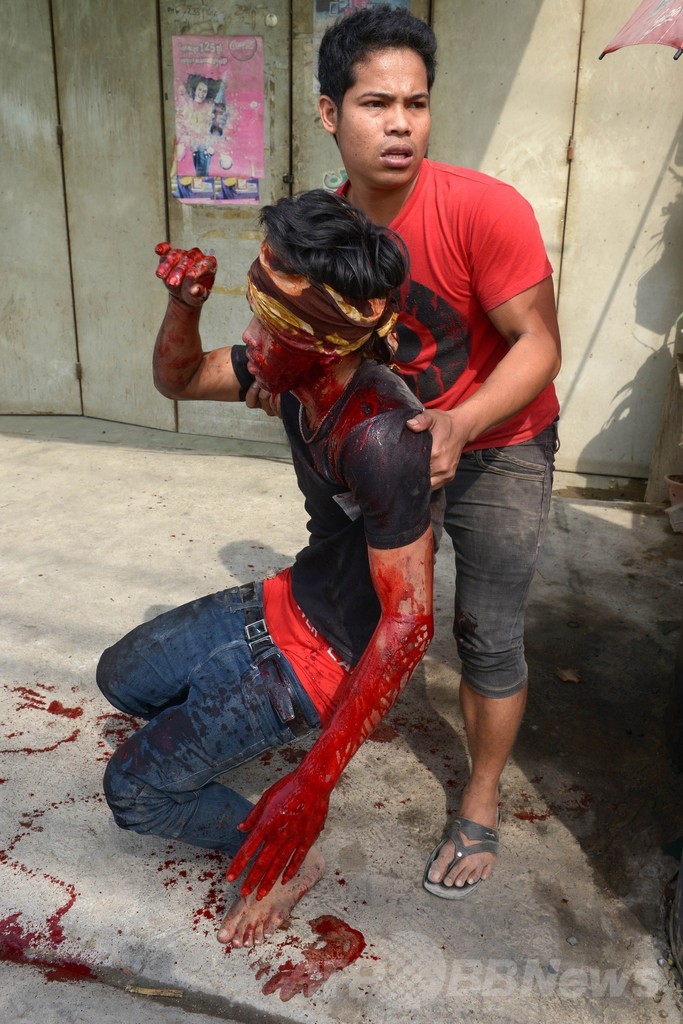 現場で取材中のAFPカメラマンが目撃したところによると、棒や石、火炎瓶などで武装したデモ隊と小銃を所持した警官隊は、工場が集中するプノンペン郊外のベン・スレン(Veng Sreng)地区で衝突。警官隊が空に向けて威嚇射撃した後、デモ隊に向けて発砲した。
