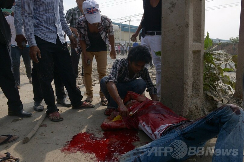 現場で取材中のAFPカメラマンが目撃したところによると、棒や石、火炎瓶などで武装したデモ隊と小銃を所持した警官隊は、工場が集中するプノンペン郊外のベン・スレン(Veng Sreng)地区で衝突。警官隊が空に向けて威嚇射撃した後、デモ隊に向けて発砲した。