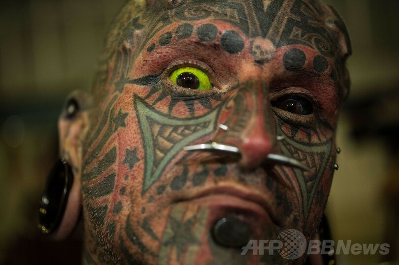 世界で最も多数のタトゥーやピアスを施している夫婦としてギネス世界記録(Guinness World Records)に登録されたタトゥー・アーティストや各国のアーティストたちが参加したほか、タトゥーのコンテストも行われた。(c)AFP