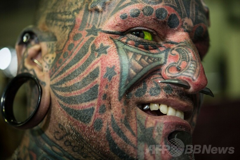 世界で最も多数のタトゥーやピアスを施している夫婦としてギネス世界記録(Guinness World Records)に登録されたタトゥー・アーティストや各国のアーティストたちが参加したほか、タトゥーのコンテストも行われた。(c)AFP