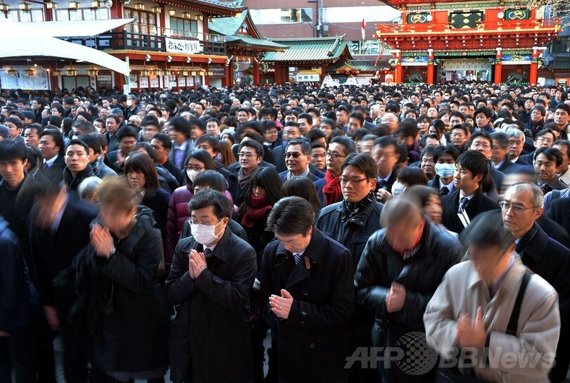 ニュース ライフ 仕事始めに商売繁盛を祈願、神田明神 2014年1月6日 15:20 発信地:東京 [ アジア・オセアニア 東京 ] このニュースをシェア ‹ › ❮ 1/12 ❯ 仕事始めに東京都千代田区の神田明神(Kanda-Myojin shrine)を参拝し、今年の商売繁盛を願う人たち(2014年1月6日撮影)。(c)AFP/Yoshikazu TSUNO 画像作成中 ! 【1月6日 AFP】商売繁盛のご利益で知られる東京・千代田区の神田明神(Kanda-Myojin shrine)には6日、大勢の会社員や経営者がスーツ姿で新年の仕事始めの参拝に訪れた。(c)AFP ライフ 一覧へ> メディア・報道関係・法人の方向け 写真・動画 購入のお問合せ>