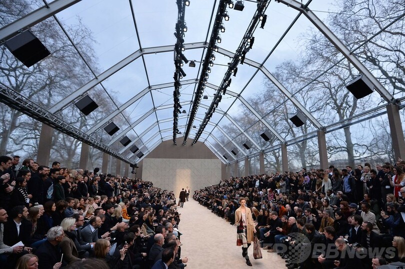 8日には、クリストファー・ベイリー(Christopher Bailey)が手がける「バーバリー プローサム(BURBERRY PRORSUM)」が新作を発表した。(c)AFP