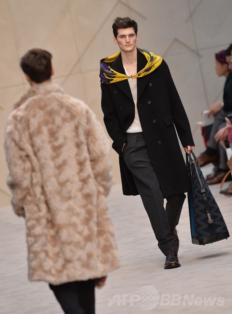 8日には、クリストファー・ベイリー(Christopher Bailey)が手がける「バーバリー プローサム(BURBERRY PRORSUM)」が新作を発表した。(c)AFP