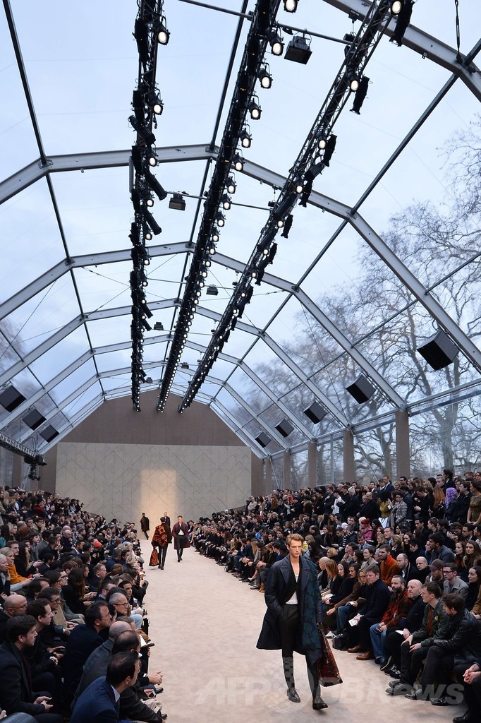 8日には、クリストファー・ベイリー(Christopher Bailey)が手がける「バーバリー プローサム(BURBERRY PRORSUM)」が新作を発表した。(c)AFP