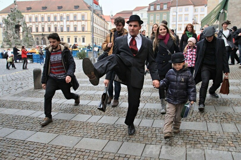 1月7日は「国際シリー・ウォーク・デー(International Silly Walk Day)」。集まったファンたちは、モンティ・パイソンのメンバーが作中で着ていたようなスーツに身を包み、ブルノの街中を思いつく限りの「バカな歩き方」で練り歩いた。(c)AFP