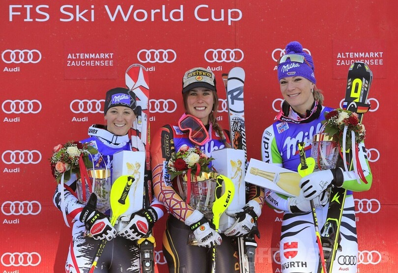 2位には合計2分5秒87でミヒャエラ・キルヒガサー(Michaela Kirchgasser、オーストリア)、3位には合計2分5秒94でマリア・ヘッフル・リーシュ(Maria Hoefl-Riesch、ドイツ)が続いた。(c)AFP