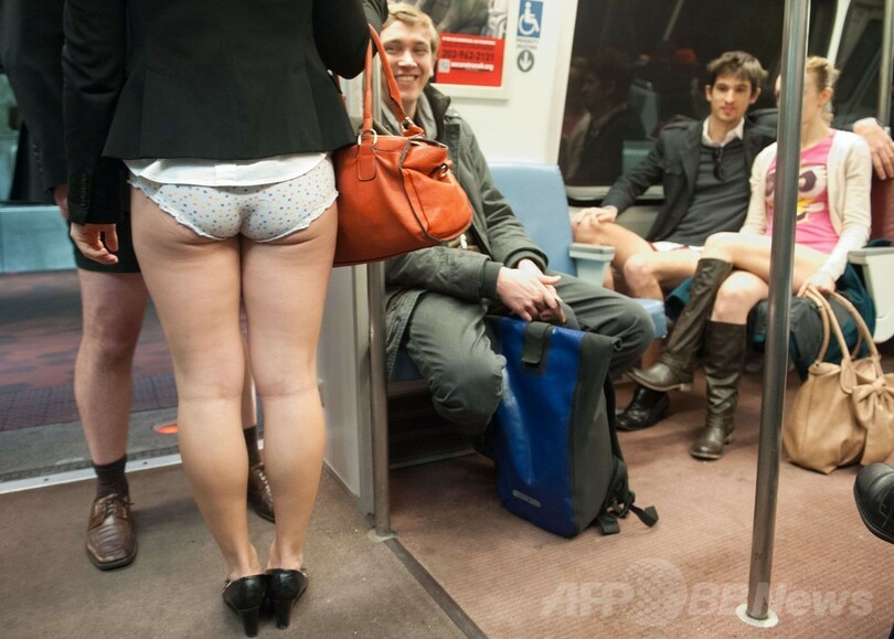 【1月13日 AFP】米国で12日、毎年恒例のびっくりイベント「No Pants Subway Ride(パンツなしで地下鉄に乗ろう)」が行われ、ニューヨーク(New York)やワシントンD.C.(Washington D.C.)などでズボンやスカートをはかない姿で地下鉄や鉄道に乗車する人たちが見られた。仕掛け人は、ニューヨークを拠点に公共の場でのおふざけイベントを企画する集団「インプロブエブリウェア(Improv Everywhere)」。参加者は、ズボンやスカートをはかないほかは通常の冬服を着て、何食わぬ顔でいることがルールだ。(c)AFP