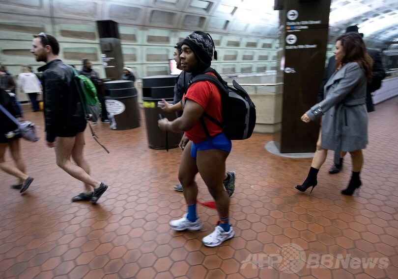 【1月13日 AFP】米国で12日、毎年恒例のびっくりイベント「No Pants Subway Ride(パンツなしで地下鉄に乗ろう)」が行われ、ニューヨーク(New York)やワシントンD.C.(Washington D.C.)などでズボンやスカートをはかない姿で地下鉄や鉄道に乗車する人たちが見られた。仕掛け人は、ニューヨークを拠点に公共の場でのおふざけイベントを企画する集団「インプロブエブリウェア(Improv Everywhere)」。参加者は、ズボンやスカートをはかないほかは通常の冬服を着て、何食わぬ顔でいることがルールだ。(c)AFP