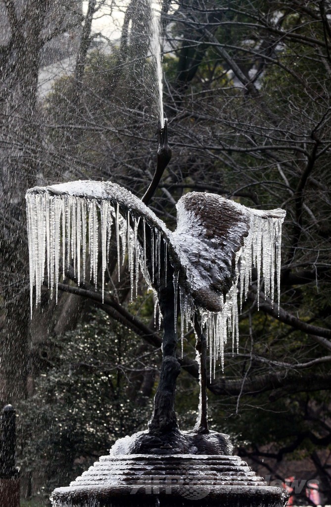 ニュース ライフ 冬の風物詩、鶴の像に「氷の翼」 東京・日比谷公園 2014年1月14日 15:57 発信地:東京 [ アジア・オセアニア 東京 ] このニュースをシェア ‹ › ❮ 5/7 ❯ 都内の日比谷公園にある「鶴の噴水」で、広げた翼につららが垂れ下がる鶴の像(2014年1月14日撮影)。(c)AFP/Yoshikazu TSUNO 画像作成中 ! 【1月14日 AFP】厳しい寒さに見舞われた14日、都内の日比谷公園にある「鶴の噴水」では、鶴の像が広げる翼に大きなつららができた。(c)AFP ライフ 一覧へ> メディア・報道関係・法人の方向け 写真・動画 購入のお問合せ>