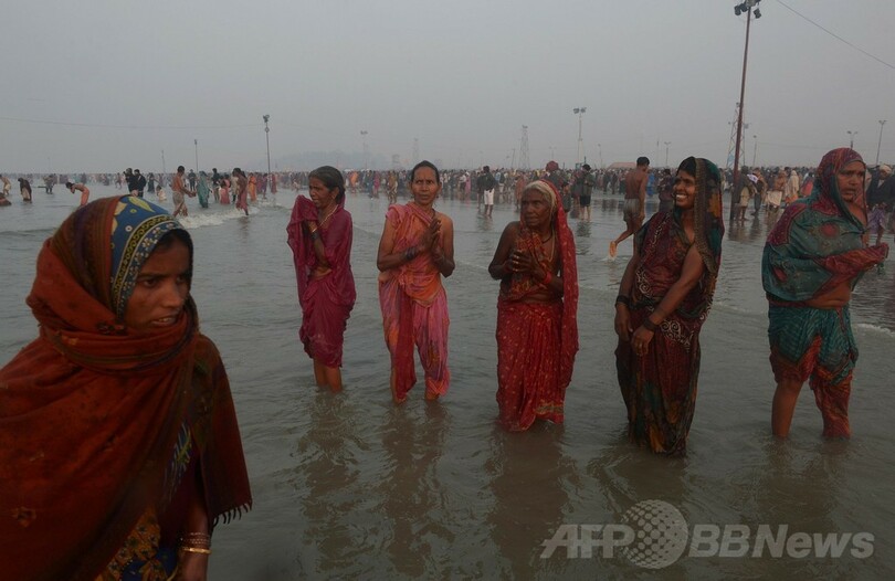ヒンズー教の「ガンガサガールメーラ」、巡礼者40万人が沐浴