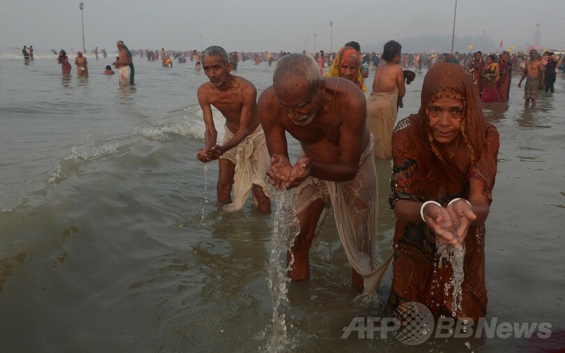 ヒンズー教の「ガンガサガールメーラ」、巡礼者40万人が沐浴