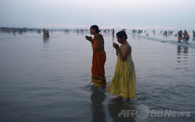 ヒンズー教の「ガンガサガールメーラ」、巡礼者40万人が沐浴