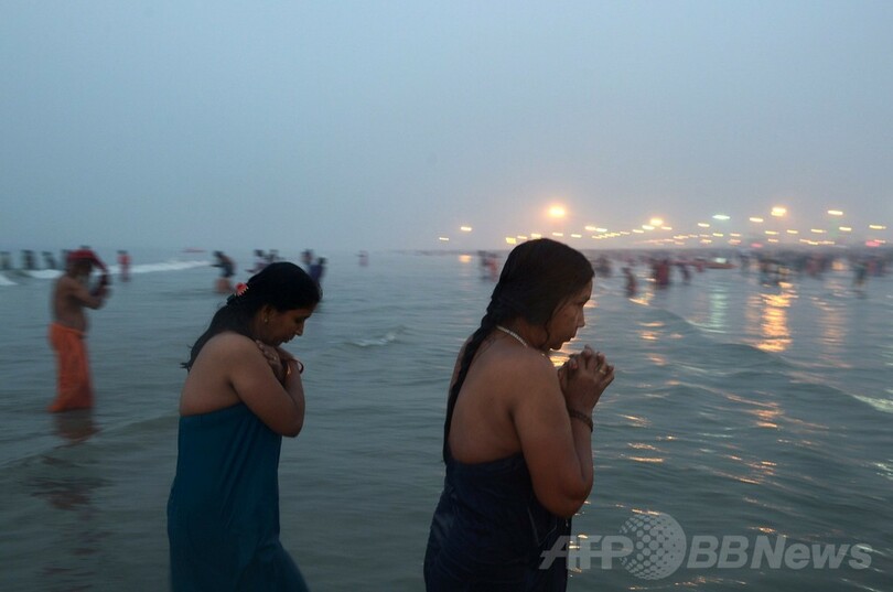 ヒンズー教の「ガンガサガールメーラ」、巡礼者40万人が沐浴