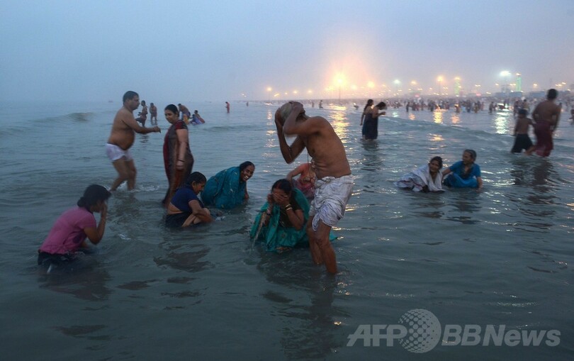 ヒンズー教の「ガンガサガールメーラ」、巡礼者40万人が沐浴