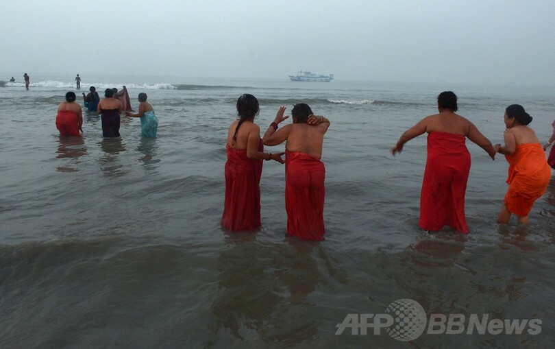 ヒンズー教の「ガンガサガールメーラ」、巡礼者40万人が沐浴