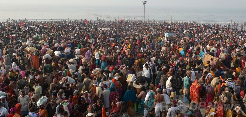 ヒンズー教の「ガンガサガールメーラ」、巡礼者40万人が沐浴