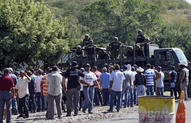 自警団はこのほどさらに多くの町を掌握し、人口12万3000人のアパトシンガンを包囲。市街戦が発生する懸念が高まったことを受け、13日に軍の投入が命じられていた。(c)AFP/Leticia PINEDA