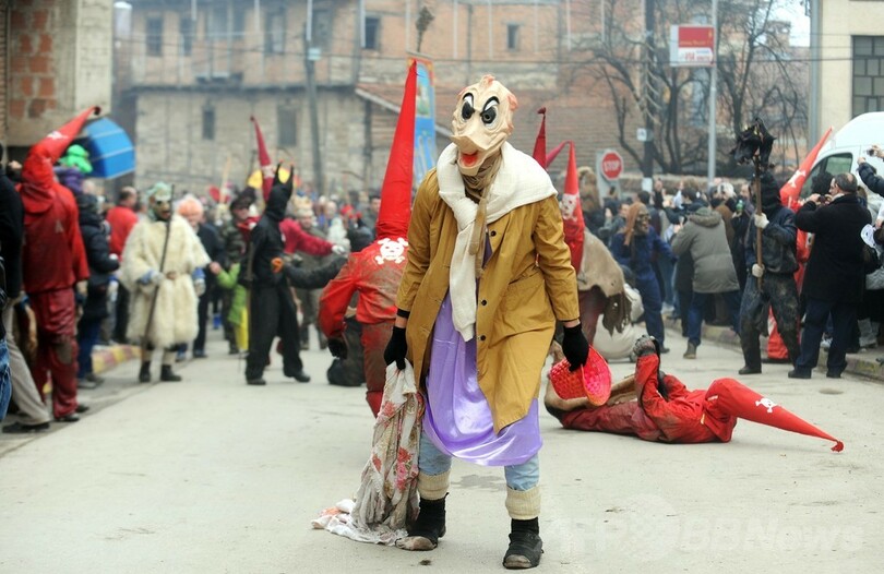 【1月16日 AFP】マケドニア南西部のベブチャニ(Vevchani)村で13日、1400年続く伝統の祭「ベブチャニ・カーニバル(Vevchani carnival)」が開催された。1400年の伝統を誇るこのカーニバルは、ユリウス暦の新年に当たる14日、聖バシリウス(Saint Basil)の祝祭日の前日に毎年行われている。(c)AFP
