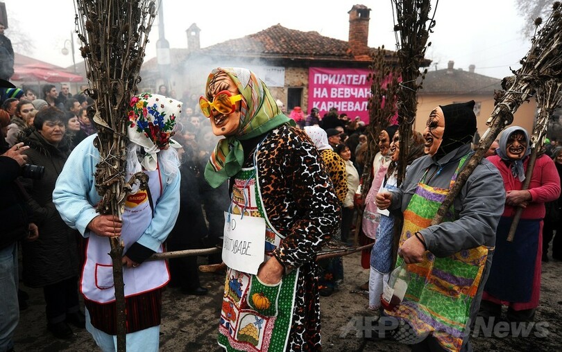 【1月16日 AFP】マケドニア南西部のベブチャニ(Vevchani)村で13日、1400年続く伝統の祭「ベブチャニ・カーニバル(Vevchani carnival)」が開催された。1400年の伝統を誇るこのカーニバルは、ユリウス暦の新年に当たる14日、聖バシリウス(Saint Basil)の祝祭日の前日に毎年行われている。(c)AFP